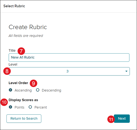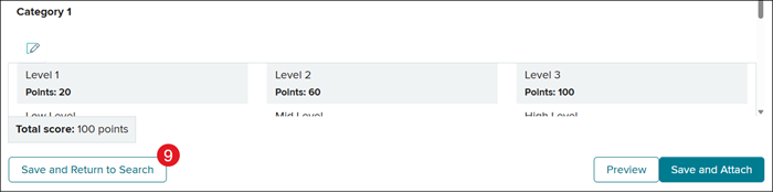 Clicking the Save and Return to Search button brings you back to Select Rubric pop-up.