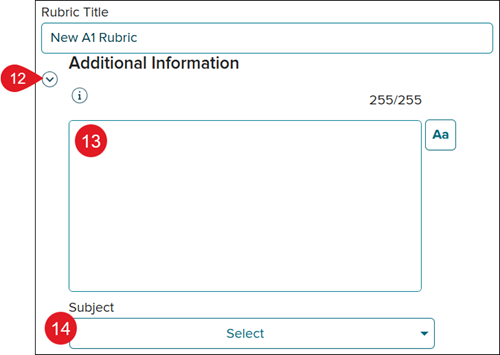 13. Enter a description of the rubric and any additional information you want included.