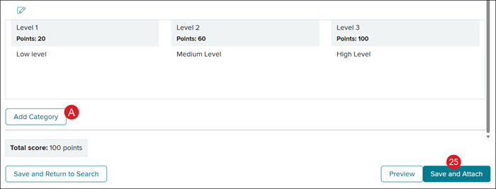 25. Click the Save and Attach button to attach the rubric to the question.