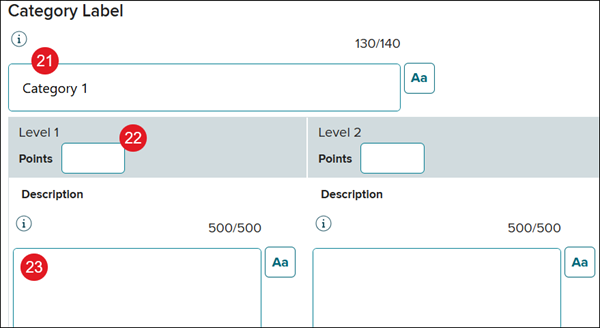22. Enter the Points/Percentage for each Level.