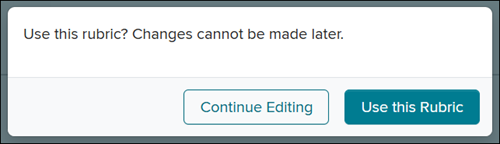 26. On the pop-up, click the Use this Rubric button. Keep in mind, once the rubric is created there is not a way to make edits.