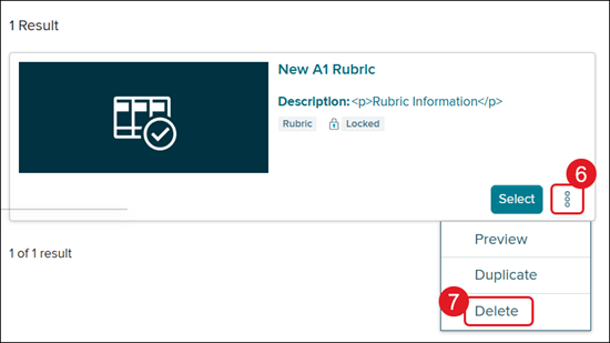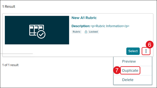 6. Click the Options menu icon on the rubric you want to copy.