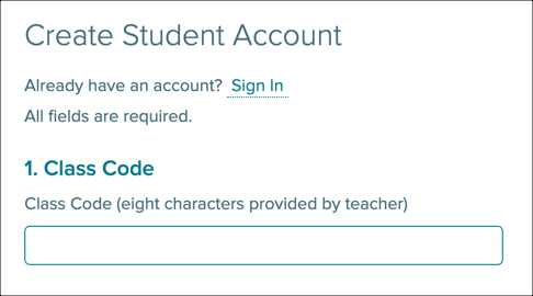 2. On the Create Student Account page, enter the 8-character Class Code you received from your teacher.