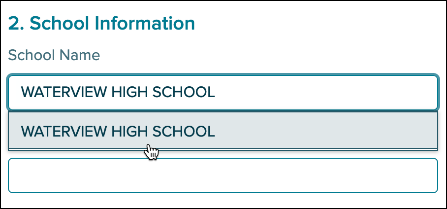 4. Enter the name of your school into the School Name field, and then select the correct option that appears in the drop-down.