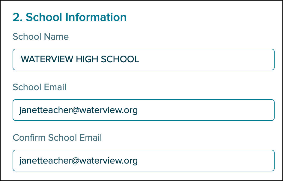 5. Enter your school email address in the School Email and Confirm School Email fields.