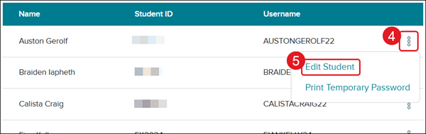 4. Click the kebob icon to the right of the student name.