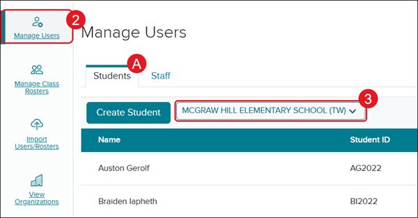 - Organization Administrator: The District/Purchasing Account Organization Administrator can manage users, class rosters, and products for all schools/organizations assigned to the district/purchasing account. They also have access to the Admin Dashboard reports for all schools/organizations.