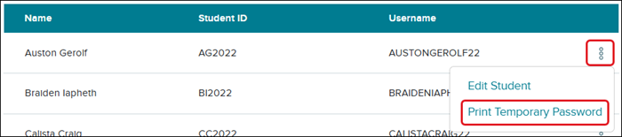 You have two options for resetting student passwords: set a permanent password or a temporary password.