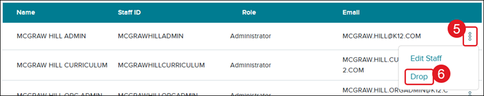 Note: Before you drop any teacher from the district/school, you will first need to remove any redeemed content from the teacher's account. If you drop the teacher from the account first, this will cause the license for the redeemed content to be 'stuck' to that teacher's account.