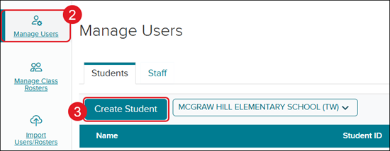 3. On the Students tab, click the Create Student button.