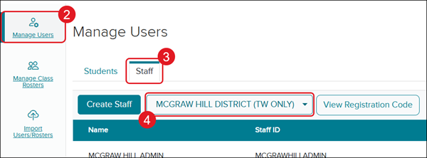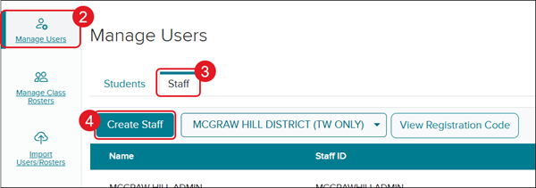 4. Click the Create Staff button.