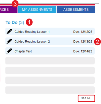 3. To view all your assignments, c lick the My Assignments tab at the top of the screen o r the  See All link under your list.