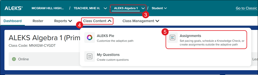 This article walks teachers through creating quiz, test, and homework assignments in the new ALEKS view.
