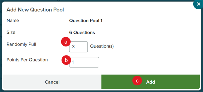 a. Enter the preferred number of questions to Randomly Pull from the selected questions.