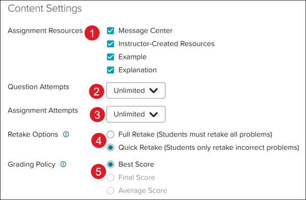 1. Select the preferred Assignment Resources for students to have access to during the assignment.