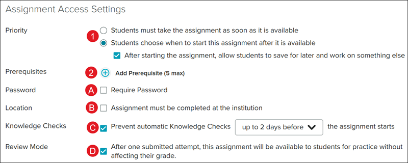 D. Uncheck the box next to Review Mode if you do not want students to be able to use the assignment as practice after completion.