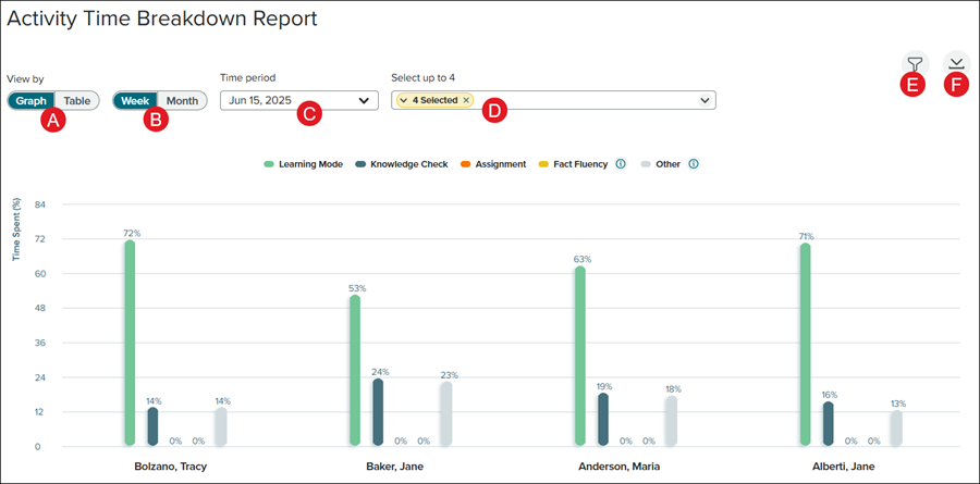 D. When in Graph view, Select up to 4 students to view at a time.