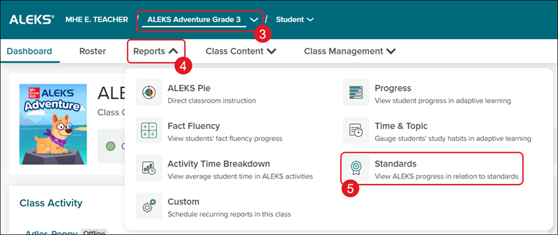 This article walks teachers through viewing the Standards Report for ALEKS Adventure in the new ALEKS view.