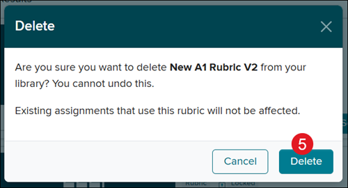 Once a rubric is deleted, there is not a way to get it back and would need to be recreated if it is still needed. Assignments attached to the rubric will not be affected if the rubric is deleted.