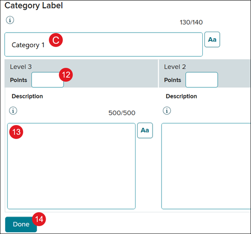 Note: These sections will need to be completed for each additional category that is created for the rubric.