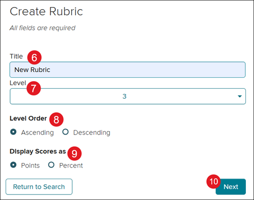 Note: Once a rubric is created, there is not a way to edit the rubric.