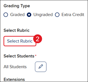2. On the Settings page of the assignment creation, click the Select Rubric button.