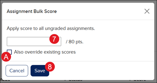 A. Check the Also override existing scores to score assignments with the bulk score entered.