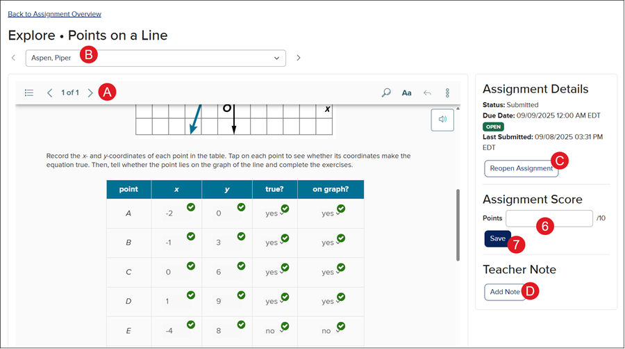 D. Click Add Note to add a note for the student to view on their assignment.