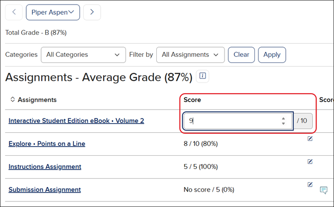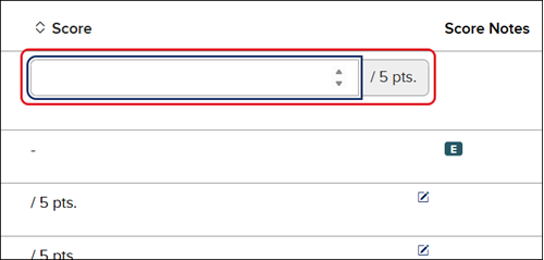 4. Click in the Score column and enter the points. This is only an available option for certain assignment types.