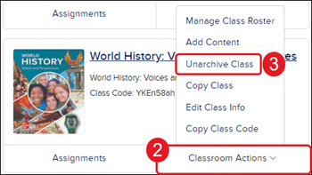 If a class was removed by mistake, or you decide you still want to use the class, you can unarchive the class. Any students associated with the class via the Roster will have access to the class once again. All scores will also still be available for the assignments.