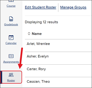 For certain courses, you can click to launch your class and then click on Roster from the Navigation Menu.