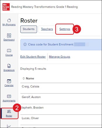 2. Click on Manage Class Rosters from the menu.