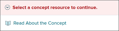 If multiple questions were answered incorrectly in a row, the student will be prompted to review the reading or resource material for that concept.