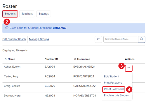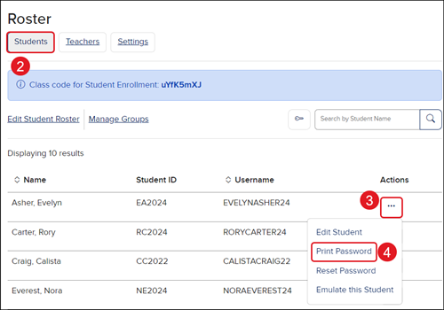 4. Click the Reset and Print Student Passwords key icon.