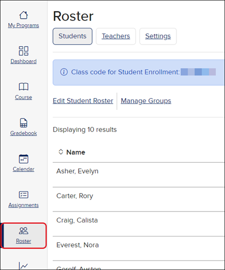 1. On your My Programs page, launch your class. Click Roster from the Navigation menu.