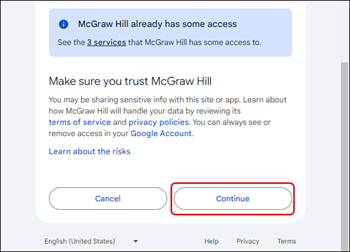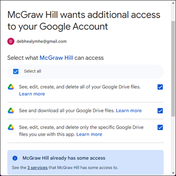 7. Checkmark the options that you want to provide McGraw Hill access to.