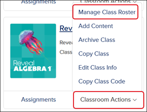 Another option would be to click on the Classroom Actions button and select Manage Class Roster from the menu.