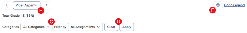 G. Click the Go to Legend link to navigate to the Legend at the bottom of the Gradebook page.