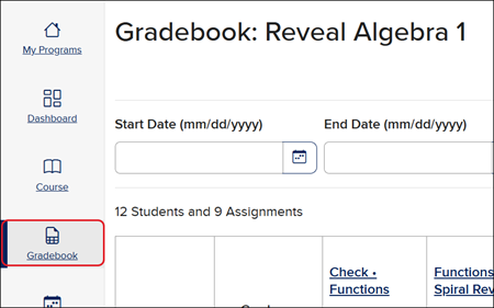 Launch your course from the My Programs page then click Gradebook in the navigation menu.