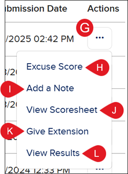 G. Click the Options button in the Actions column to open the assignment options menu.