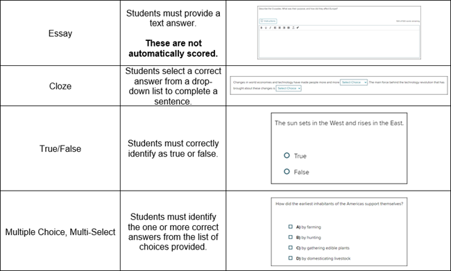 Review an overview of question types used across McGraw Hill digital assignments.