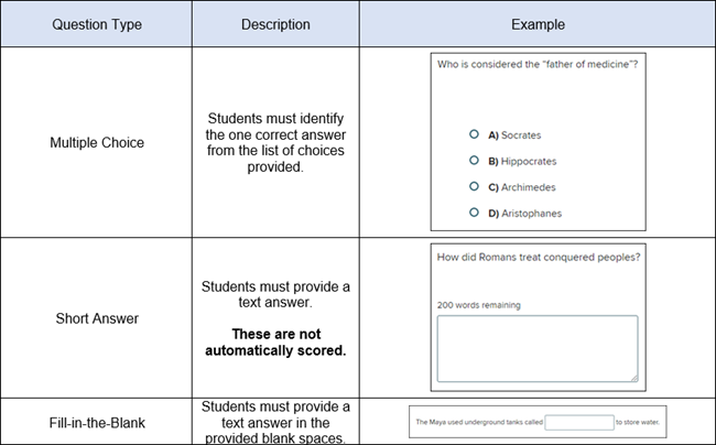 MH Assess - Question Types