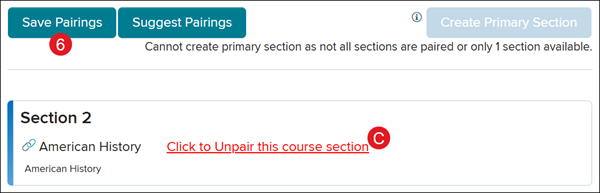 Some schools may have access to the Suggest Pairings (B) option. This button will automatically pair your classes to the selected course.