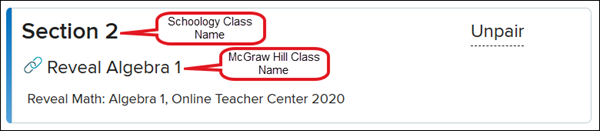 Prior to syncing assignments and grades between your McGraw Hill classes and Schoology, you need to pair your class(es). Your McGraw Hill class is automatically generated by your district's nightly roster file sent to McGraw Hill.