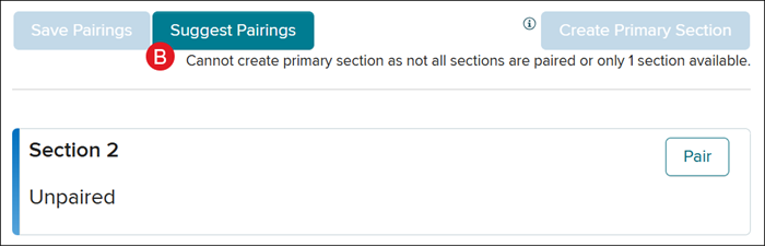 Some schools may have access to the Suggest Pairings (B) option. This button will automatically pair your classes to the selected course.