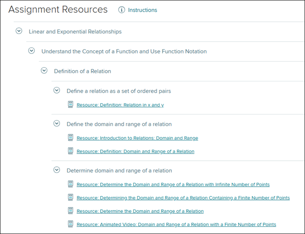 When the student clicks on View Resources, it will navigate them to an Assignment Resources page. This page is only available for certain programs.
