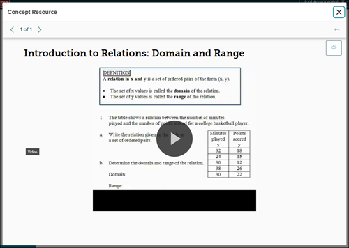 Clicking on a linked resource will launch a pop-up that includes reading material, examples, or videos to watch.