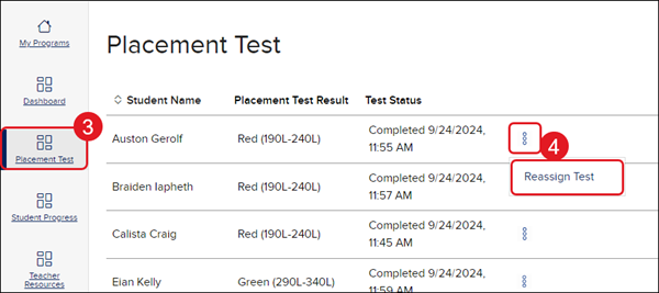 Once a student has signed in and completed their Placement Test, if you do not believe a student completed the assessment with the best of their abilities, you can reassign the test for them. Reassigning the Placement Test will remove all completed work and start the program over for the student.