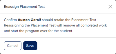 5. On the Reassign Placement Test pop-up, click Save to confirm.