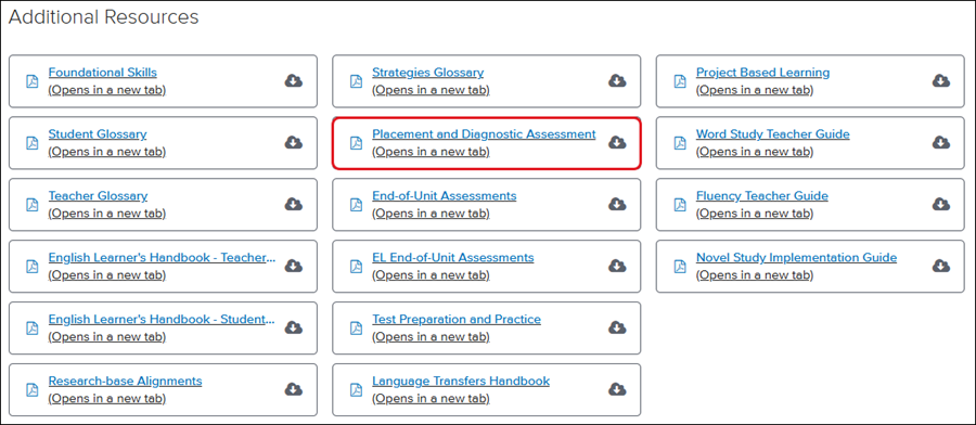 6. Download the Placement and Diagnostic Assessment PDF.